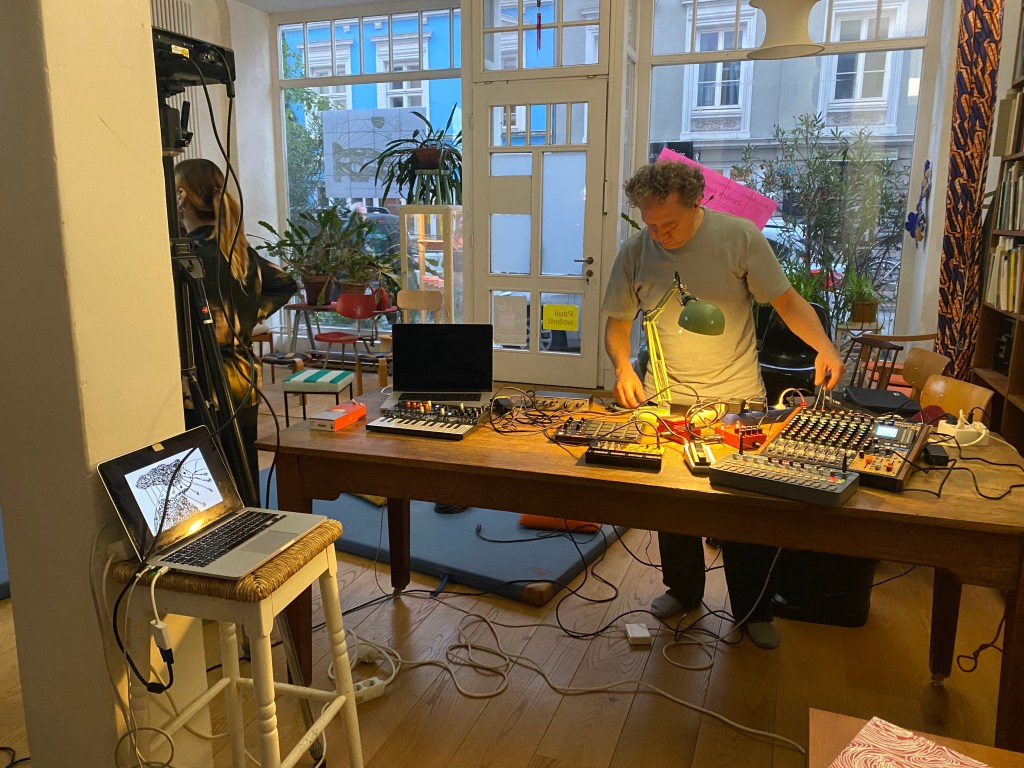 Zur Idee der Ausstellung trug nicht zuletzt auch die Publikation „Die Reihe der Planeten“ (2019) bei. Das RESTkollektiv führte mit Johannes Miethke am Soundpult eine situative Lesung aus dem Buch auf. RESTkollektiv bedankt sich ausdrücklich bei Irmgard Gottschlich (1993-2024), die sich im Kunstverein für die Arbeit des Kollektivs einsetzte.