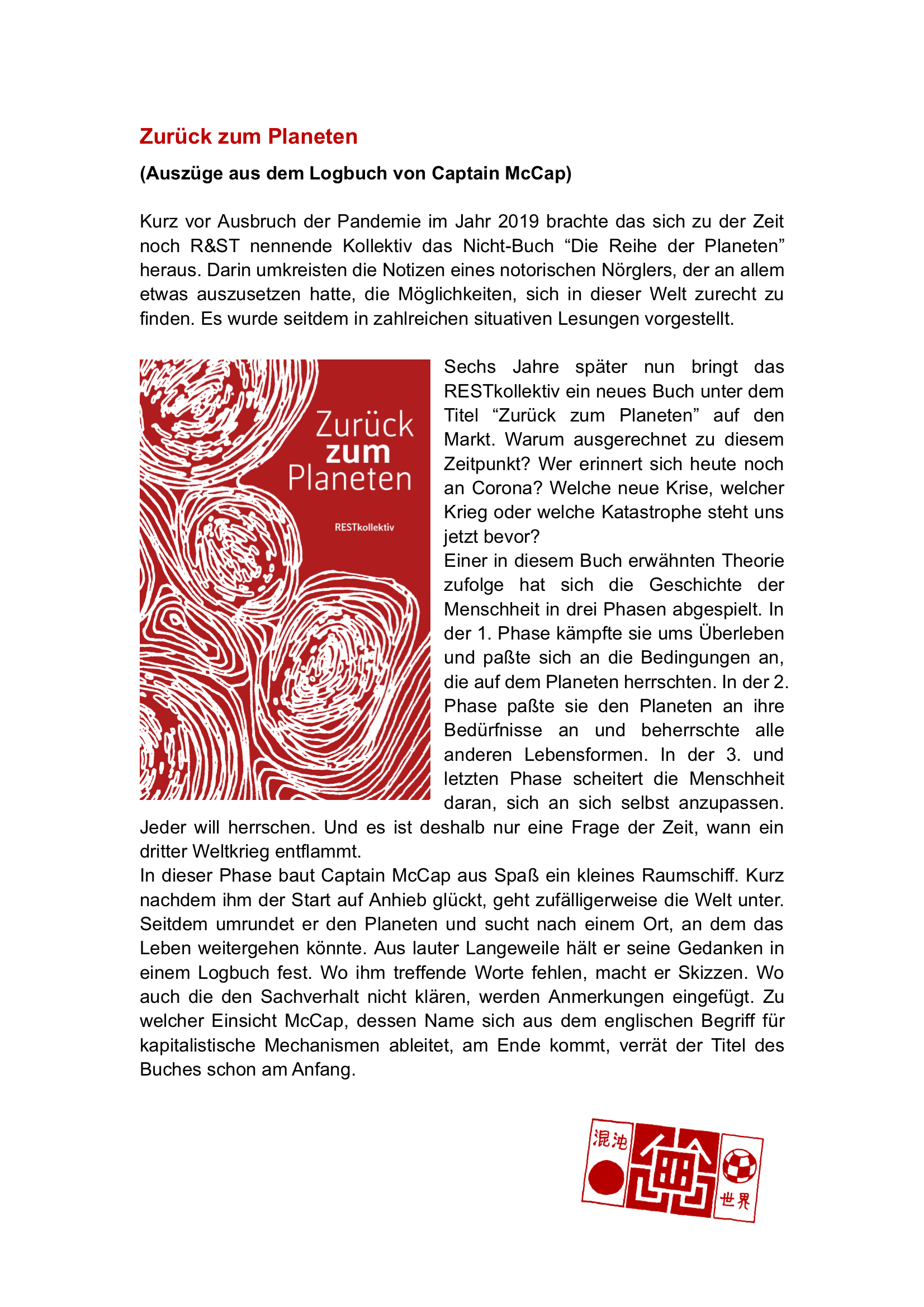 Dieser Beitrag wurde unter Uncategorized abgelegt und mit Captain MacCap, Corona, Die Reihe der Planeten, Ende der Geschichte, Kapitalismus, Kapitalismuskritik, Künstlerbuch, Klimawandel, Logbuch, Text und Zeichnung, Zurück zum Planeten verschlagwortet. Setze ein Lesezeichen auf den Permalink.